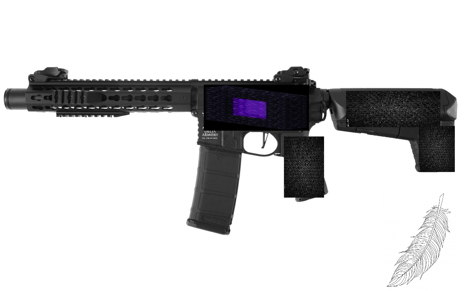 Na obrázku vidíme pušku s dračí kůží, pírkem, které dokazuje váhu a portál, který svou magií dodává to pravé ořechové.