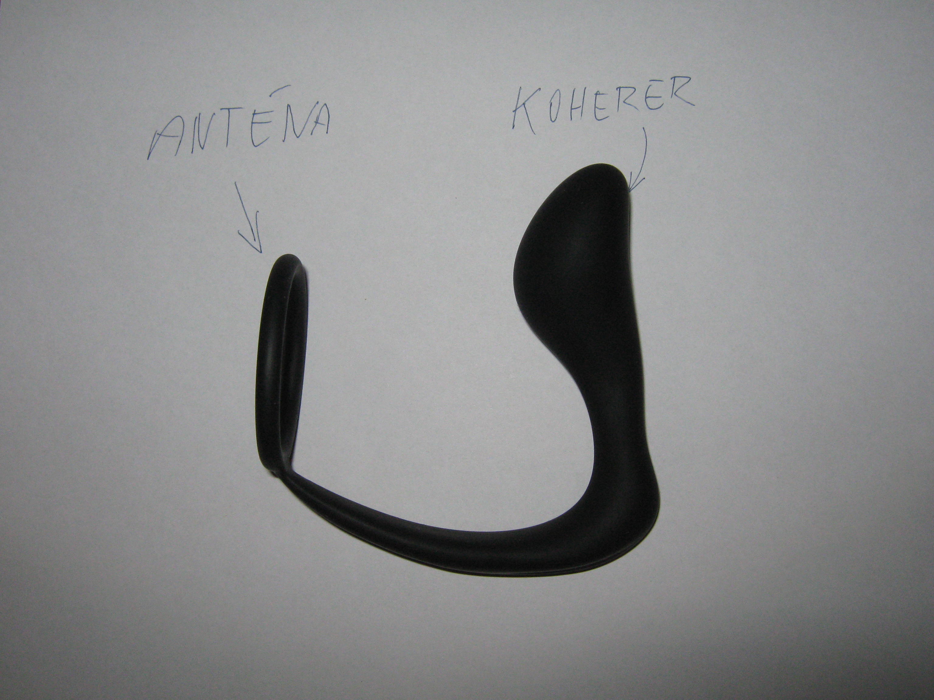Tvar prvního platebního erekčního kroužku s externím kohererem, později licencovaný výrobcům erotických pomůcek